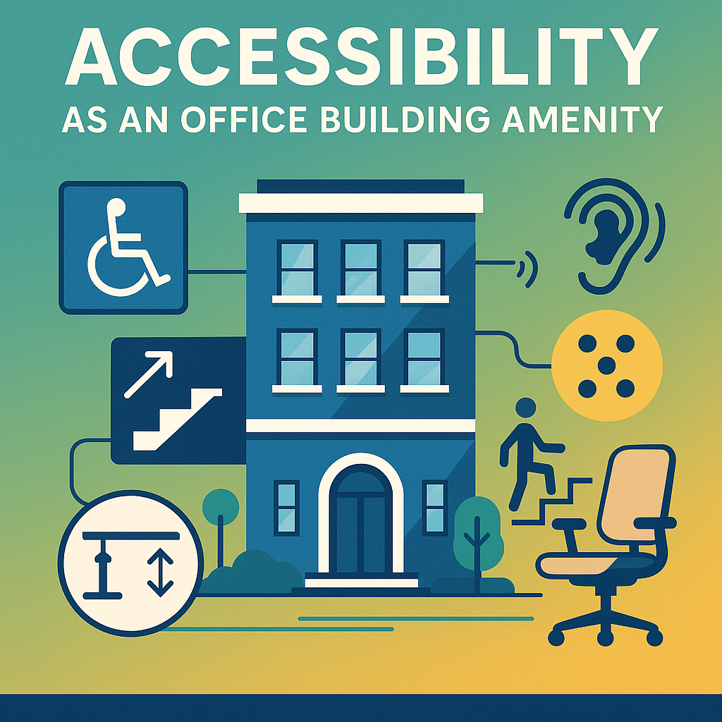 Accessibility is no longer just a regulatory requirement; it’s a core feature of inclusive, high-performing office environments. In the context of office buildings, accessibility as an amenity refers to physical and digital design elements that ensure equitable access and usability for everyone—including people with disabilities. Prioritizing accessibility benefits all users and enhances the building’s appeal to a broader range of tenants.