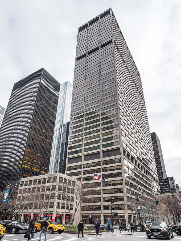 345 Park Avenue is also known as the Bristol-Myers Squibb building. The skyscraper is the headquarters of Bristol-Myers Squibb, as well as KPMG LLP. 345 Park Avenue was designed by architectural firm Emory Roth & Sons. Standing at 44 stories high, the Bristol-Myers Squibb building is the 64th tallest building in New York. 345 Park Avenue was completed in 1969.