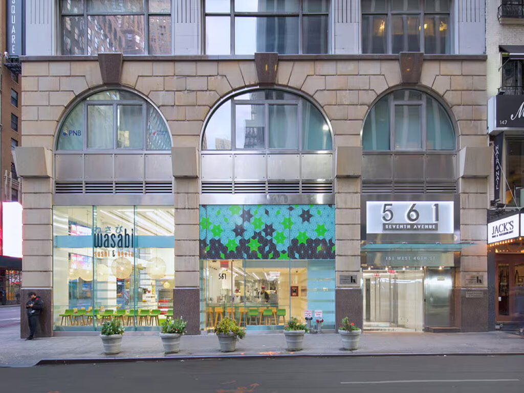 561 Seventh Avenue offers a straightforward office option for tenants focused on location, accessibility, and functional space. It provides a Times Square South address with manageable floor sizes, flexible build-out potential, and pricing that reflects its position within the Class B segment of the Midtown market.