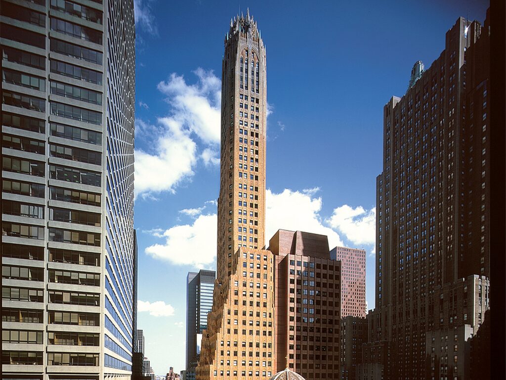 Originally constructed as the RCA Victor Building – the property compliments St. Bartholemew’s Episcopal Church and has since become of one the most eye catching unique buildings of its period.