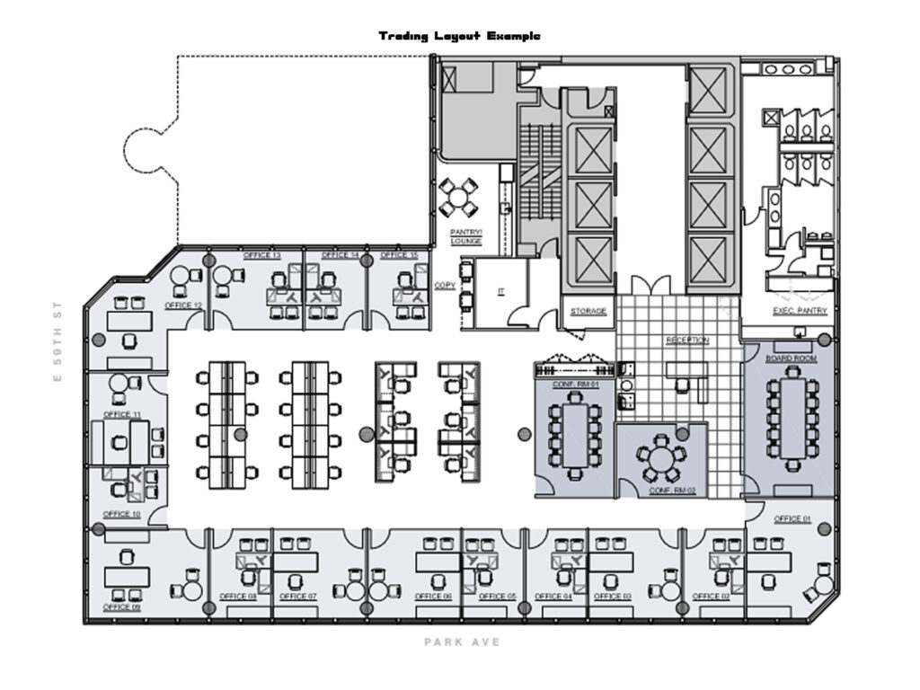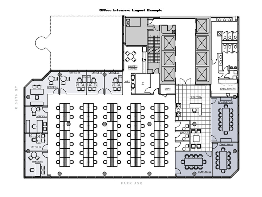 This Full Floor Park Avenue Prebuilt benefits from multiple exposures, delivering consistent daylight throughout the perimeter offices and open workspace, while the depth of the floorplate ensures interior zones remain functional without feeling enclosed. This is a full-floor identity within a premier Park Avenue asset, offering a balanced mix of private offices, collaborative rooms, and open seating in a layout that can support a wide range of professional, financial, or creative users.