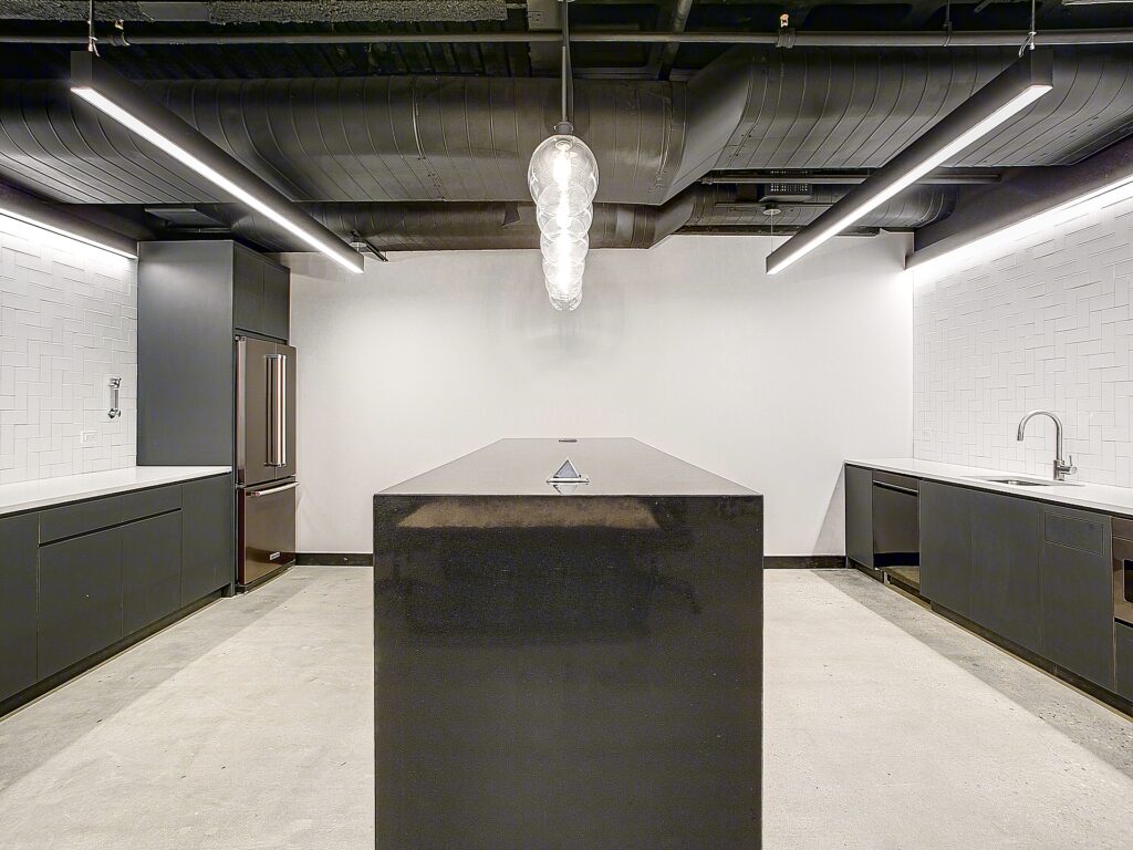 Support areas are centralized near the core, where a kitchen and pantry installation provides generous counter space, storage, and room for seating, allowing it to double as an informal gathering point for staff. Additional enclosed rooms within the core function as storage, utility, or flexible-use spaces, supporting day-to-day operations without encroaching on the primary work zones. Multiple phone rooms are also integrated into the layout, offering privacy for calls and focused work.
