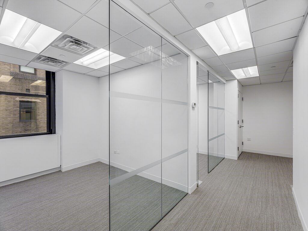 Windows line the perimeter offices and conference room, bringing consistent daylight into the primary rooms while the interior areas remain well-lit with overhead fixtures. Located within a premier office building at Grand Central, this suite benefits from full-service amenities including attended lobby, security, elevator access, and proximity to major transit, making it an ideal turnkey solution for a small law firm, consulting practice, or executive office seeking a polished and highly functional environment.
