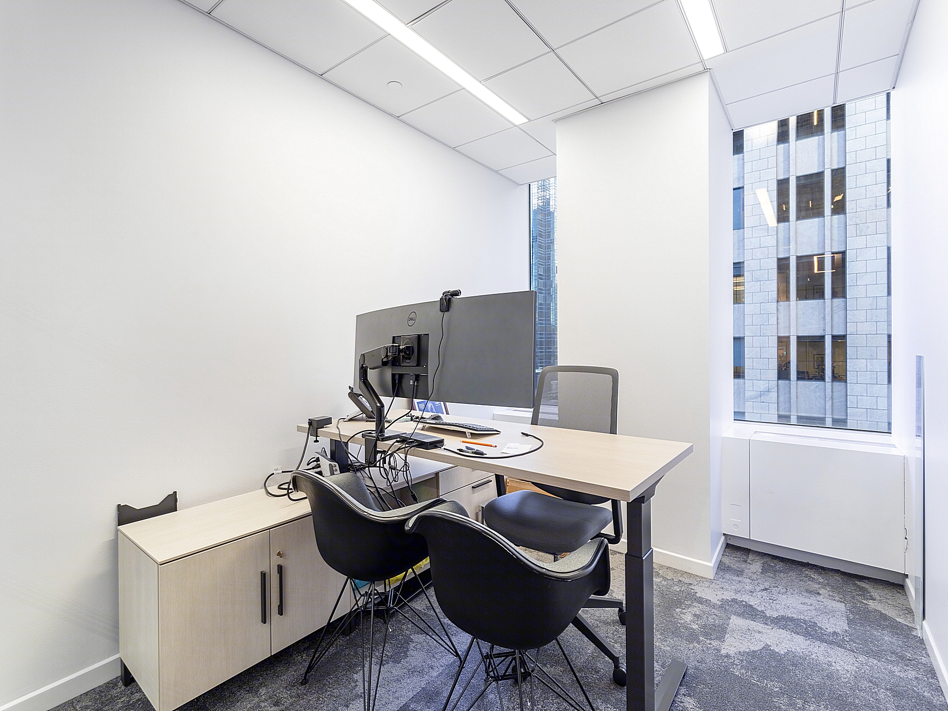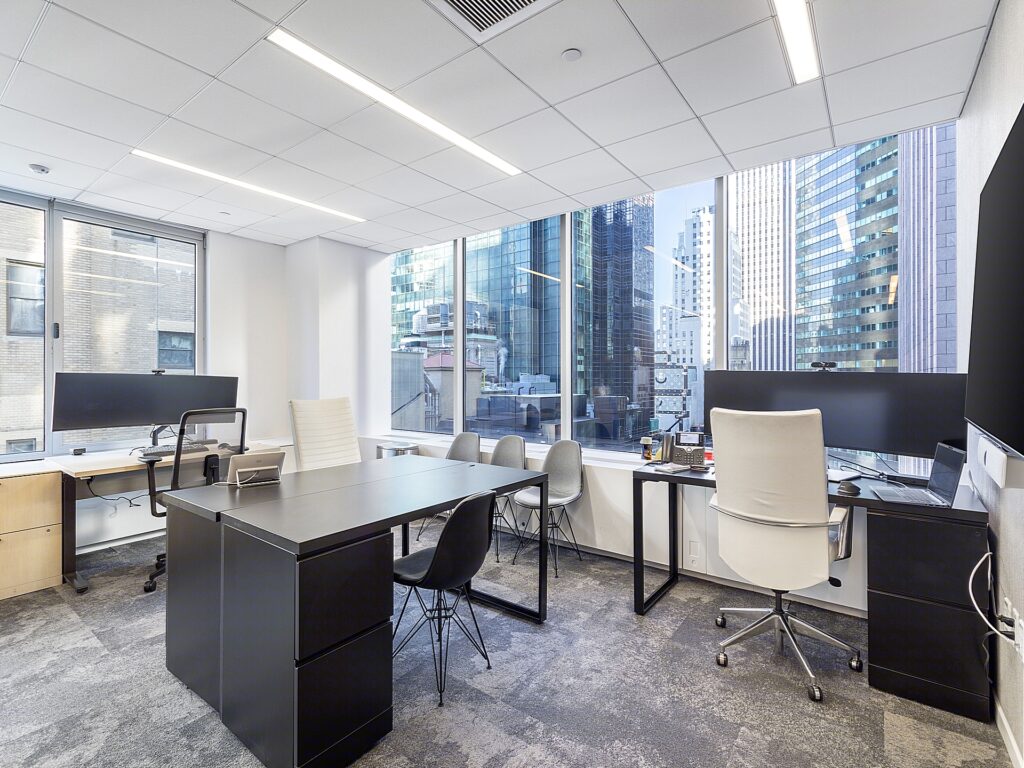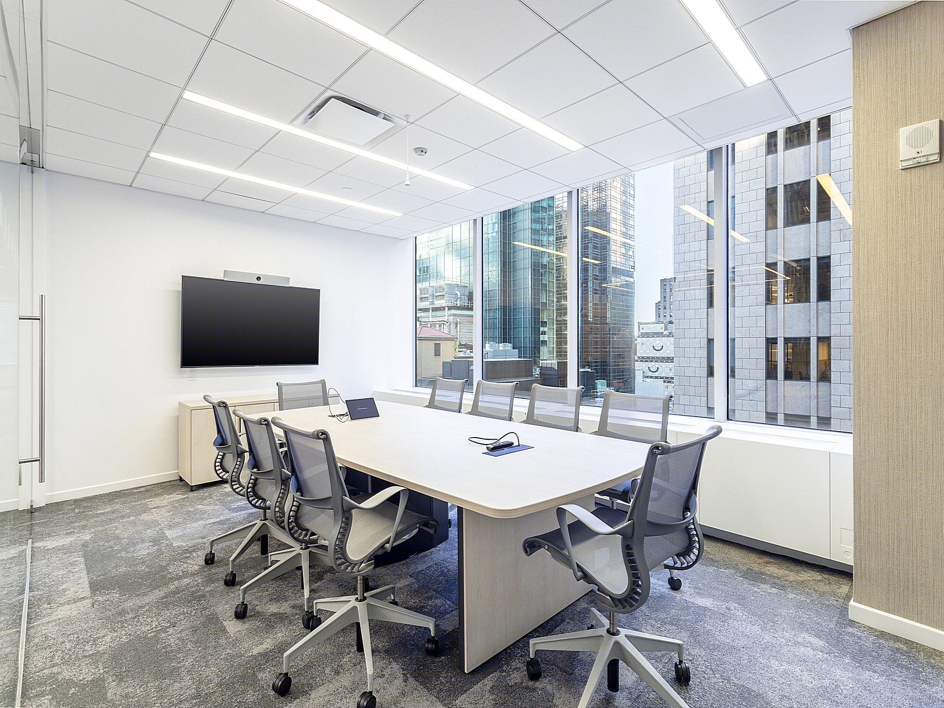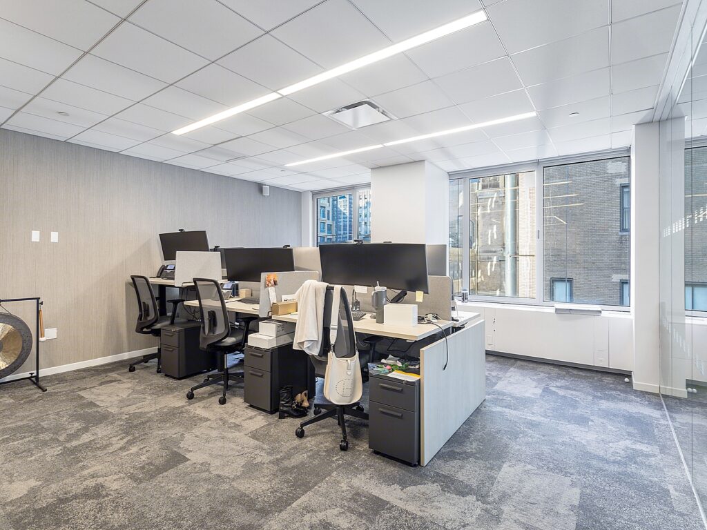 Near the center of the space, a full pantry includes modern stainless steel appliances, a coffee station, dishwasher, and filtered water service, creating a comfortable amenity hub for staff. There is a dedicated copy/print room and additional utility storage built out of view, allowing the rest of the suite to maintain a clean, uncluttered look. From reception to boardroom, every inch of the suite has been tailored for a high-performing professional Office on Madison and Fifth with the flexibility to evolve alongside a growing team. The suite’s elevated floor position, dual window lines, and premium finishes combine to create a refined and inviting workplace in the heart of Manhattan.