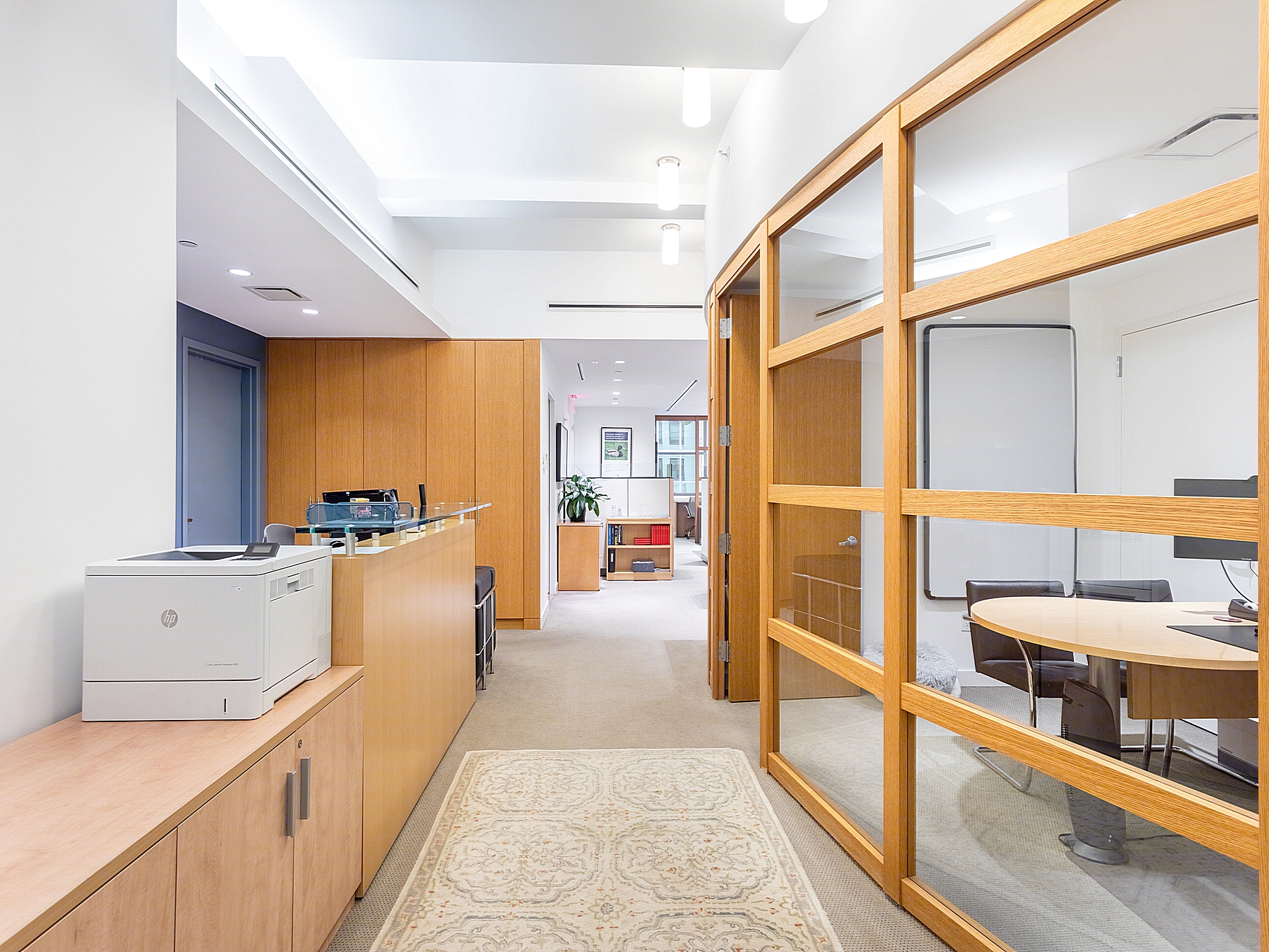 - Glass-partitioned office near reception