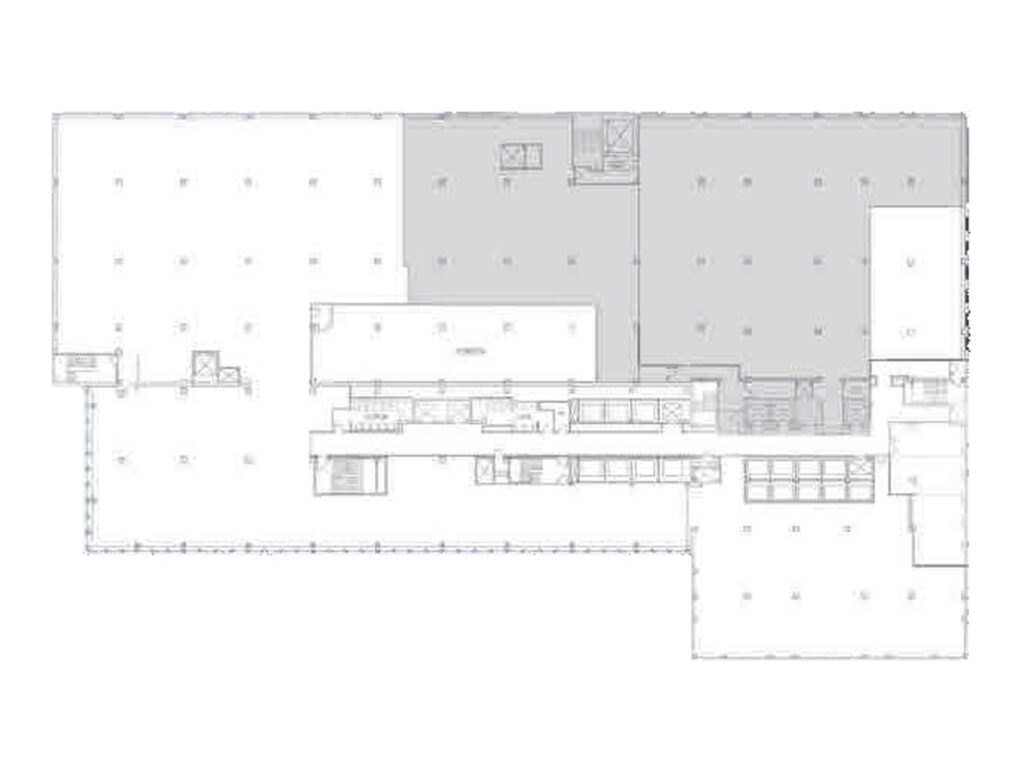 The existing condition reveals a wide, column-integrated floorplate with exposed perimeter windows running along a long exterior wall, establishing a strong foundation for distributing natural light across a future open work area. The depth of the space supports multiple planning strategies, including the creation of a large central workstation zone complemented by perimeter private offices, conference rooms, and meeting suites. Based on the scale and proportions, a tenant could comfortably introduce a double-loaded corridor along the window line to create a series of perimeter rooms that function as executive offices, client-facing conference rooms, or team breakout spaces, while preserving a substantial interior area for collaborative benching.